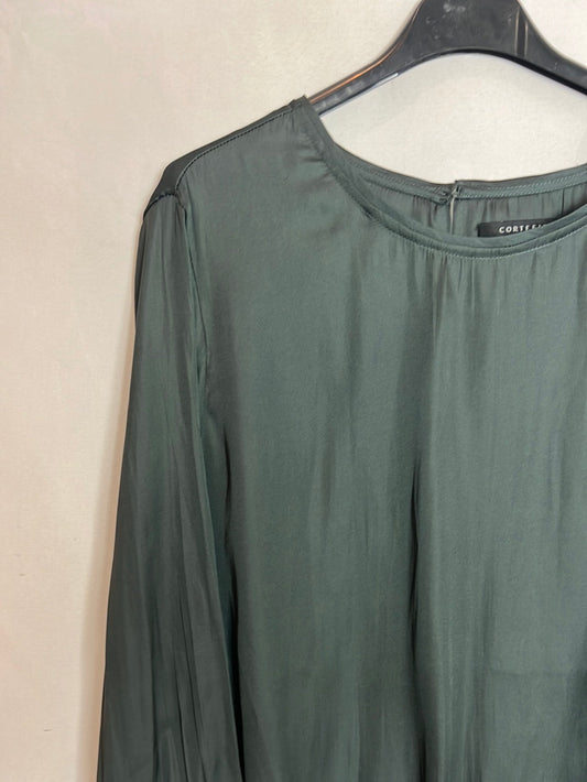 CORTEFIEL. Blusa satinada azul grisáceo. T XXL