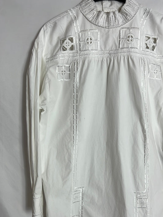 ISABEL MARANT. Vestido blanco bordado manga larga. T 38