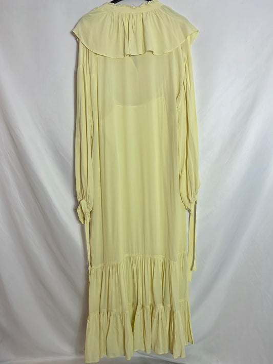MANGO. Vestido fluido volantes amarillo pastel. T S