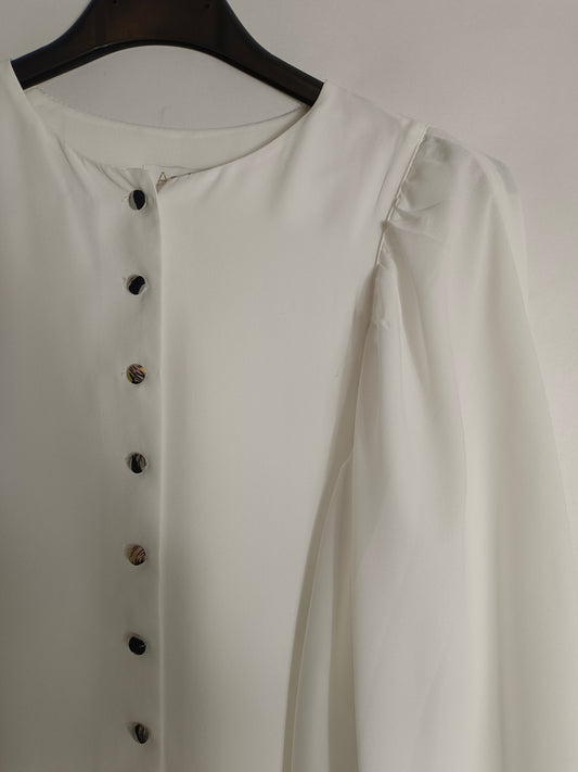 ZARA. Chaqueta azul fluida manga volante. T S