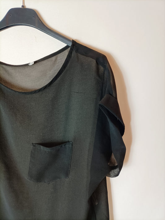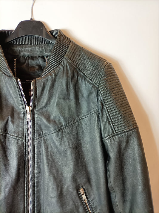 MANGO. Chaqueta negra piel texturas. T M ( tara)