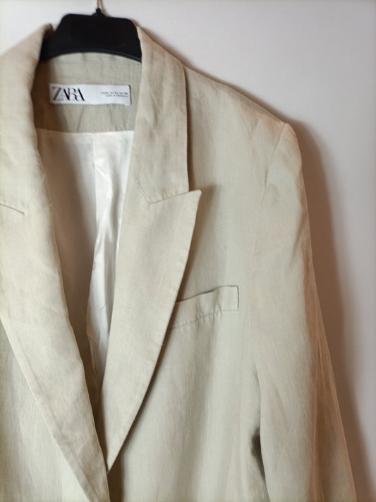 BASSEMENT. Blusa beige semitransparente encajes. T M