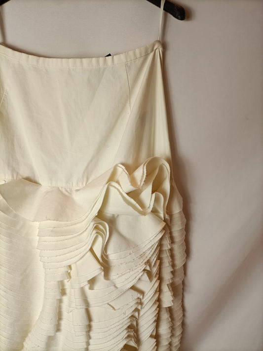H&M by EDDY ANEMIAN. Falda larga volantes blanco roto. T 34