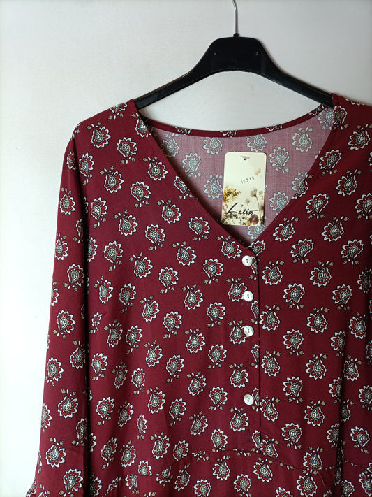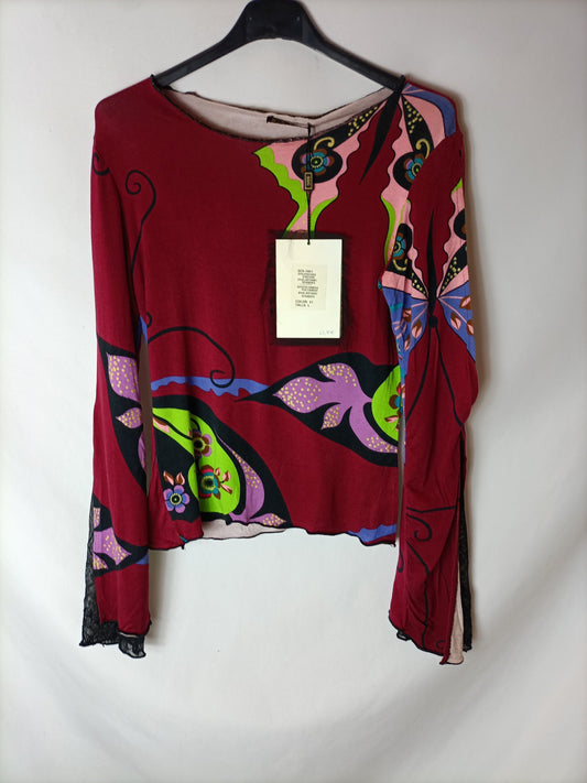 SORTIE DES CLASSES. Top burdeos estampado. T L