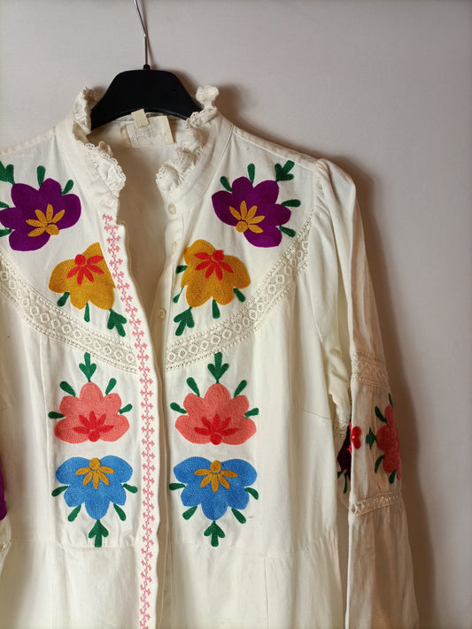 RENATTA&GO. Blusa blanca tejido animal print. T S