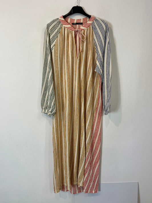 OTRAS. Pantalón lino azul marino pata ancha. T S