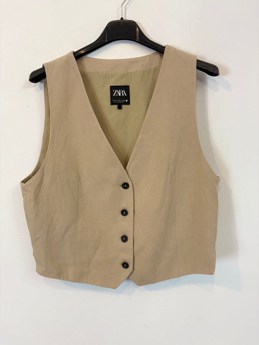 ADOLFO DOMIMGUEZ. Top y chaqueta lino beiges. T S