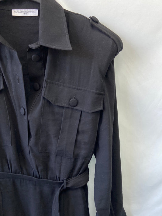 MARÍA VICTORIA PAOLILLO.Vestido negro hombreras T.L