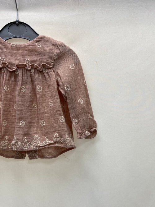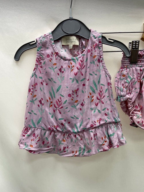 BONNET À POMPON.Top + cubrepañales rosita flores 6 meses
