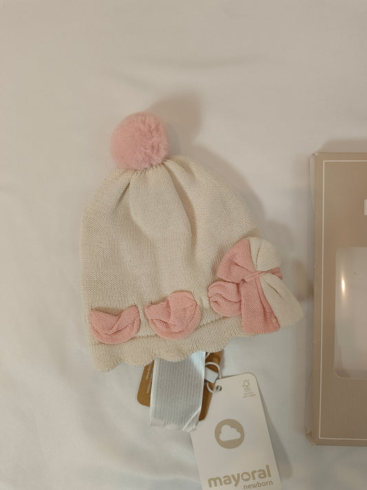 MAYORAL. conjunto beige y burdeos corazones T.1-2 meses