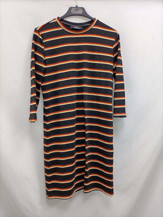 BERSHKA. Vestido de rayas amarillas y blancas T. xs
