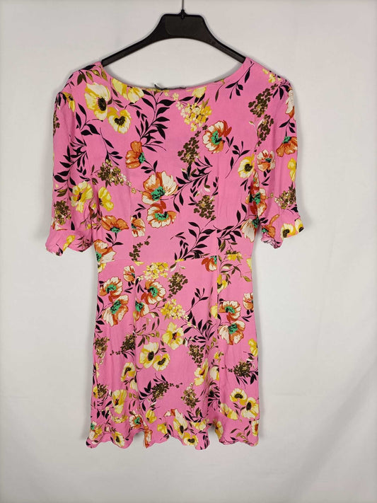 BERSHKA. Vestido corto de antelina con nudo delantero rosa palo T. l