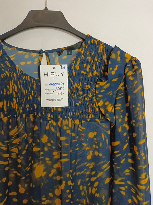 VOLIETA BY MANGO. Blusa azul larga aperturas. T XL