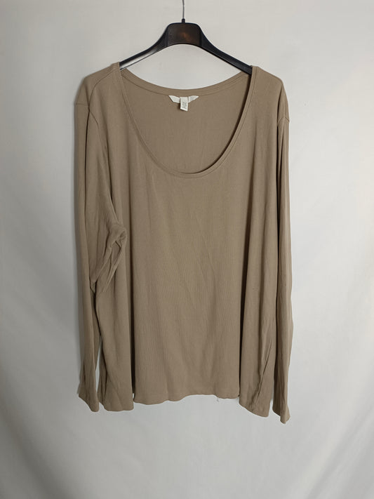 BUGANVILIA. Vestido camel mangas ligeramente abullonadas T.3xl
