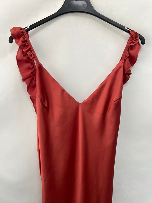BY CLÉA.Vestido midi naranja satinado (36,38,40)