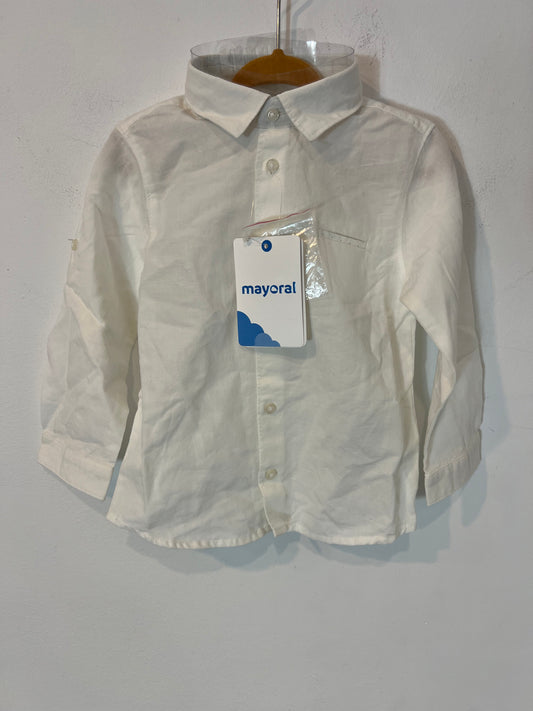 MAYORAL. Camisa blanca lino y algodón. T 18 meses