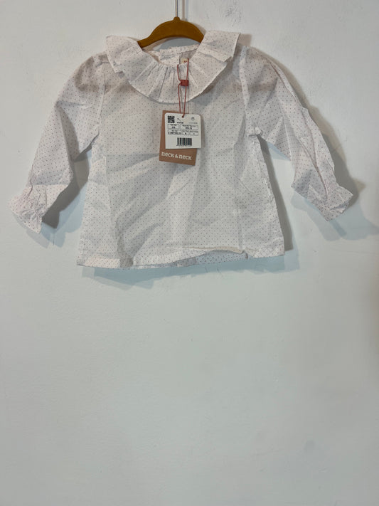 NECK&NECK. Blusa blanca lunares rosas. T 9 meses