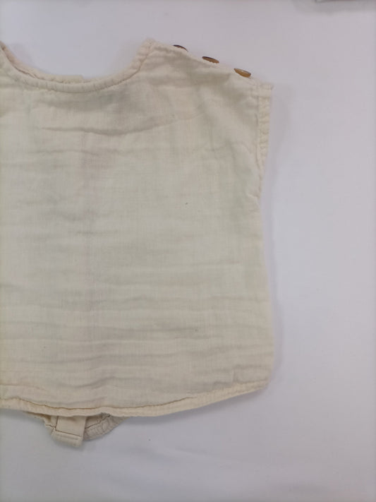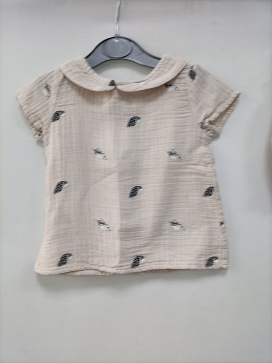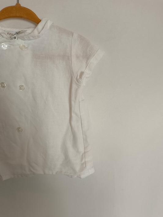 ZARA. Camisa blanca dibujos cuello mao T.9-12 meses