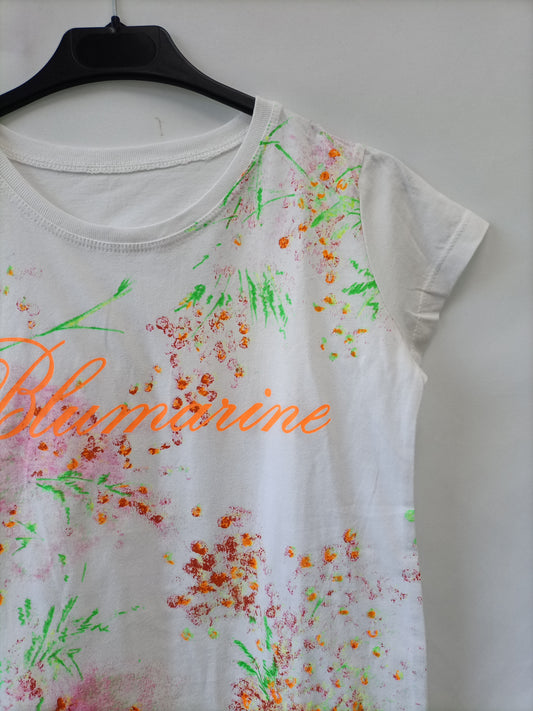 EXPRESS. Camiseta corta blanca estampado flores T.xs