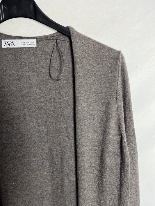 OTRAS. Cárdigan marrón jaspeado detalle mangas. T s/m