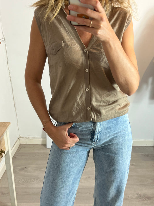 PAUL&JOE. Chaleco lana merino marrón claro. T S