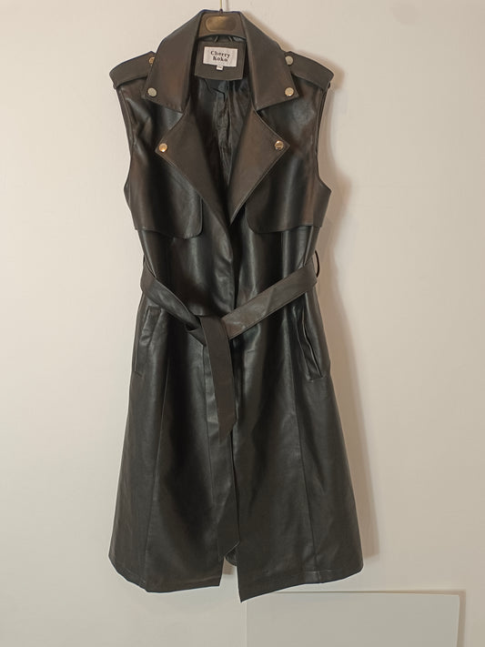 MASSIMO DUTTI. Chaleco piel fluido caqui. T S/M