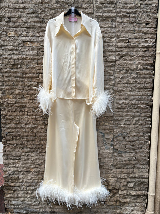 MANGO CAPSULE. Total look satinado plumas. T XS