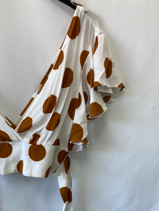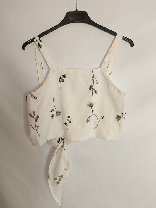 FOREVER21.Croptop blanco con lunares beiges T.S