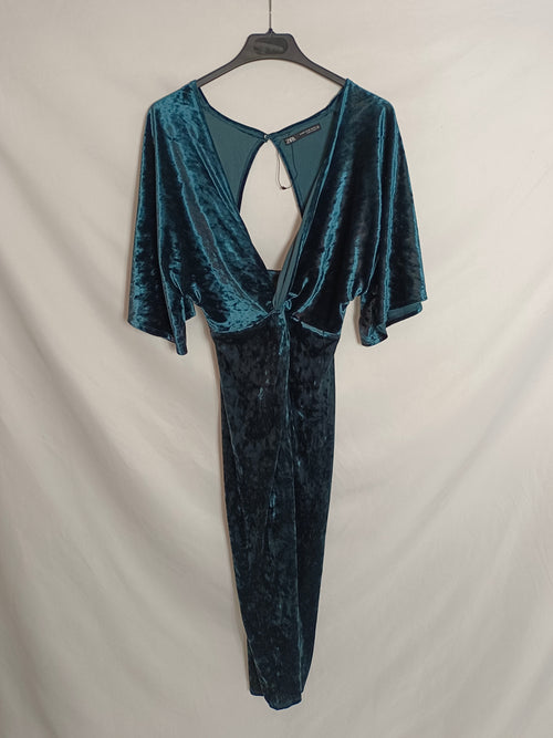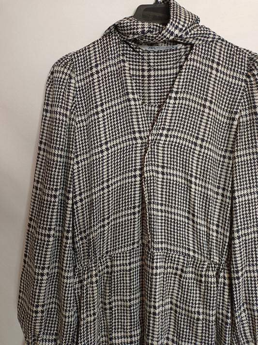 ZARA. Vestido midi satinado pata de gallo. T.S