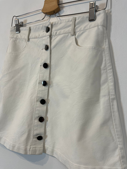 PRETTYLITTLETHING. Falda blanca abotonada efecto piel. T 38