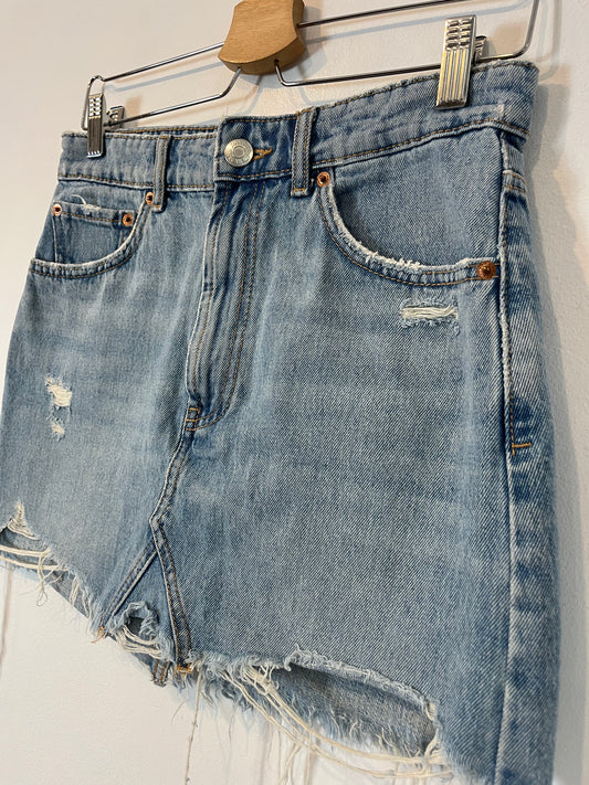 CLAUDIE PIERLOT. Falda azul corta texturas. T 36 cm