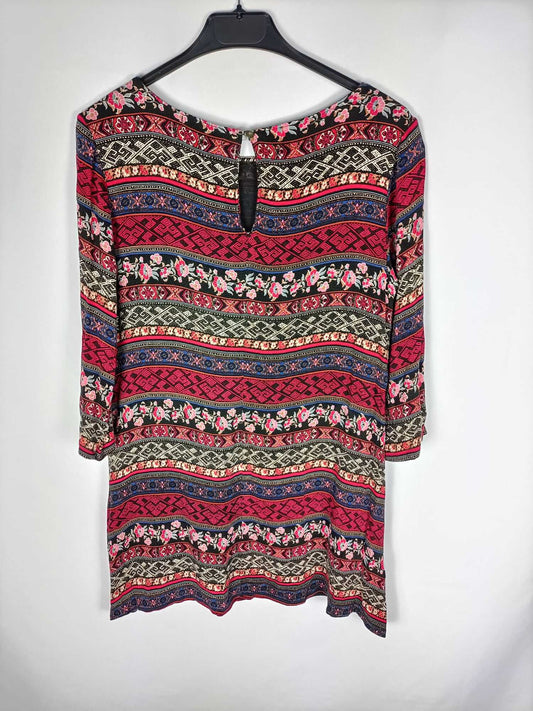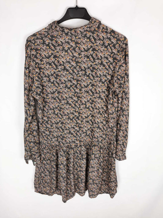 NAFNAF. Vestido negro corto estampado flores T.42