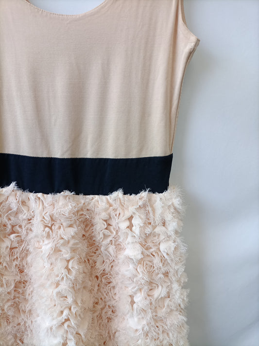 ZARA. Vestido corto color nude doble textura fajin en negro T.m