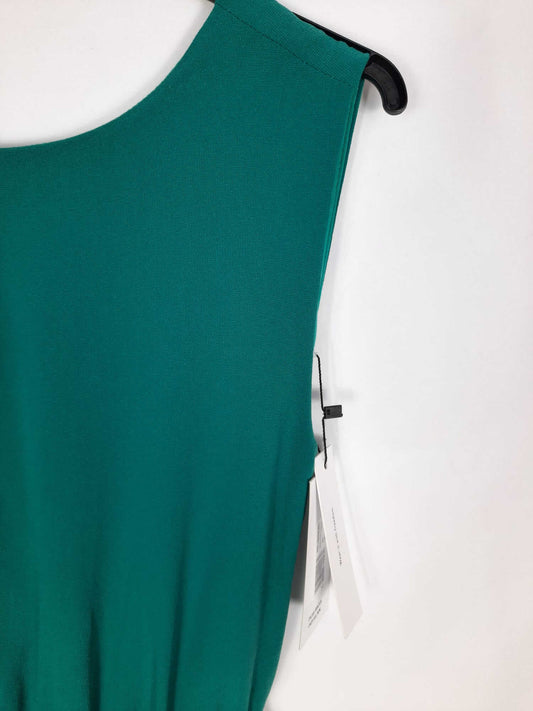 LAVAND. Vestido verde con pedrería en hombros T.m