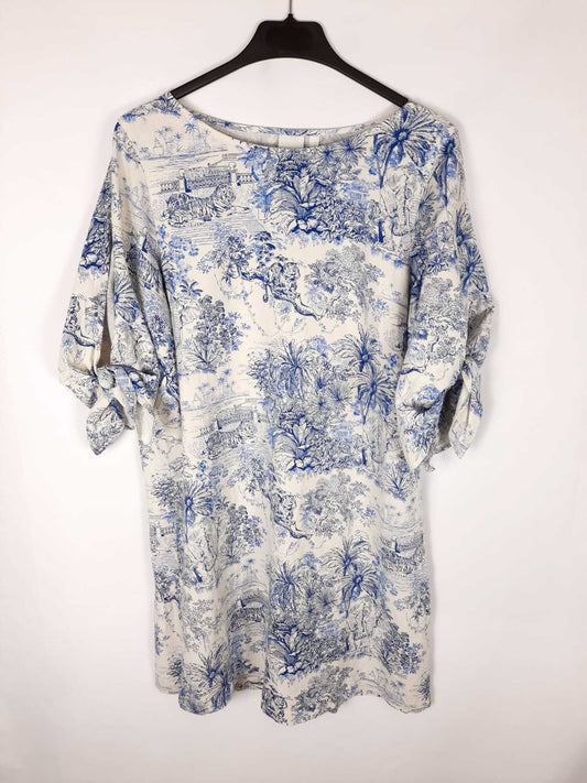 ZARA. Vestido corto blanco estampado geométrico azul marino Ts