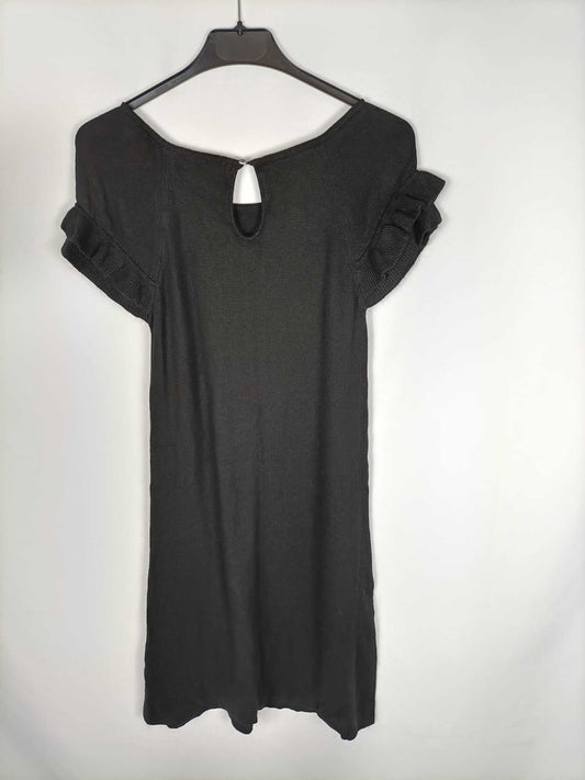 CUPLE. Vestido corto negro de lunares drapeado T. xs