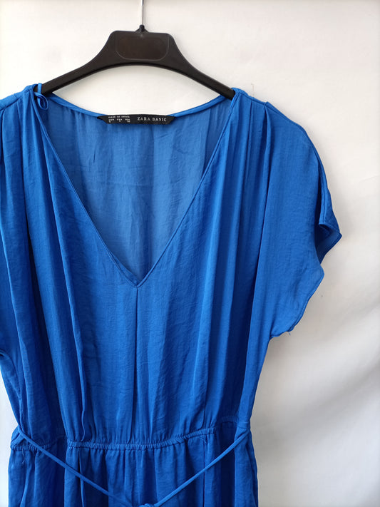 MANGO. Vestido corto azul electrico cintura fruncida T.s