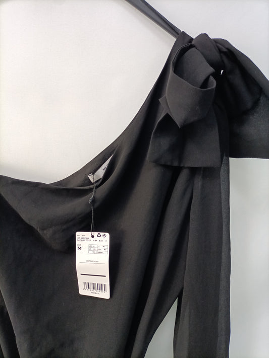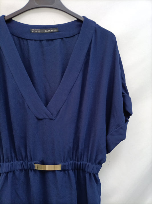 MANGO. Vestido corto azul electrico cintura fruncida T.s