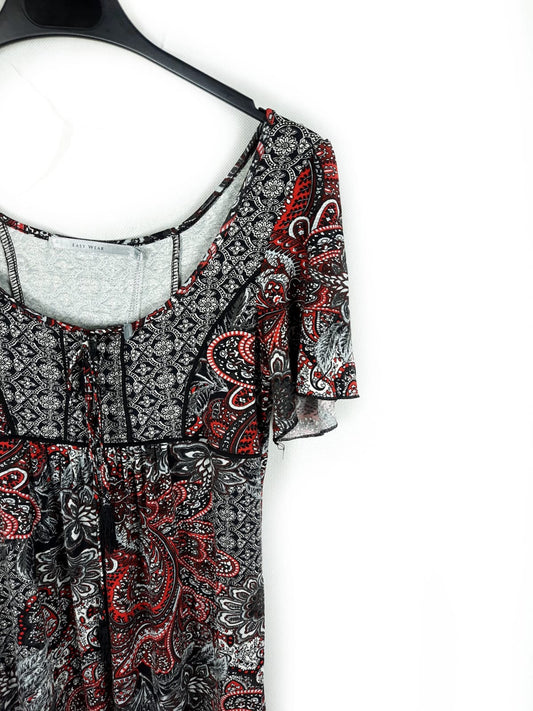 EASY WEAR. Vestido estampado rojos y negros T.36