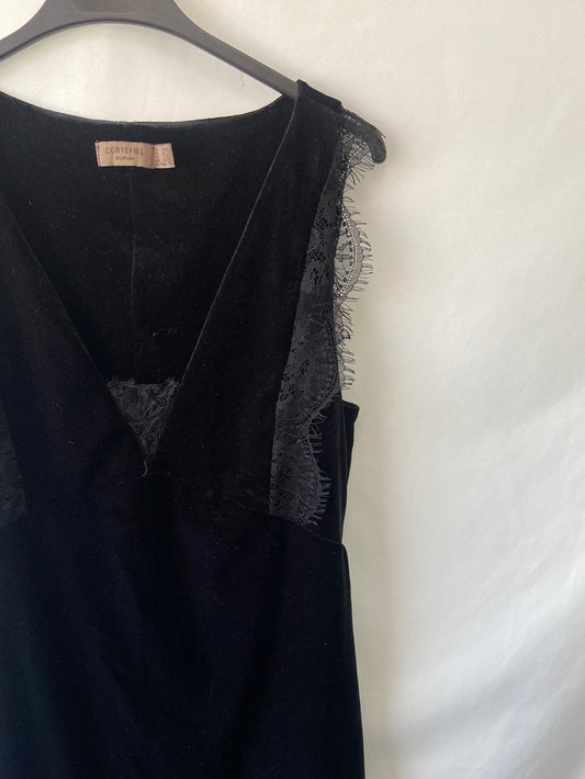 TACÓN DE AGUJA.Vestido negro T.s (algo desgastado)