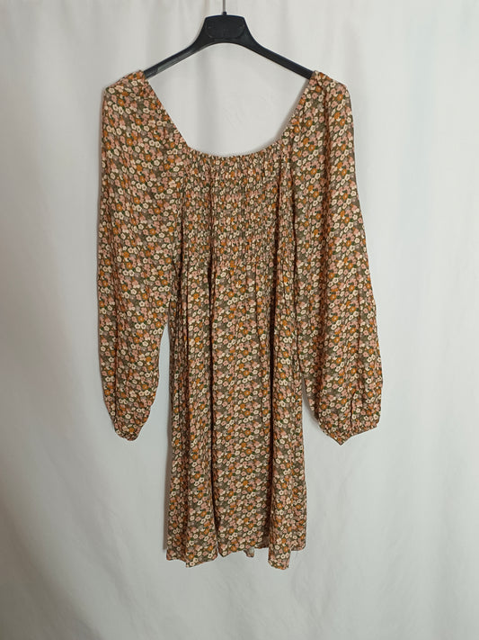 MASSIMO DUTTI. Vestido corto beige algodón. T 42