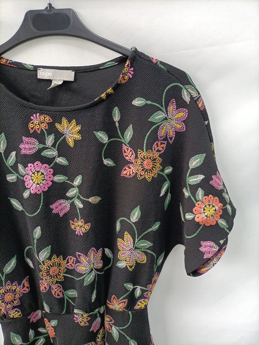ZARA.Vestido azul flores blancas neopreno fino T.s