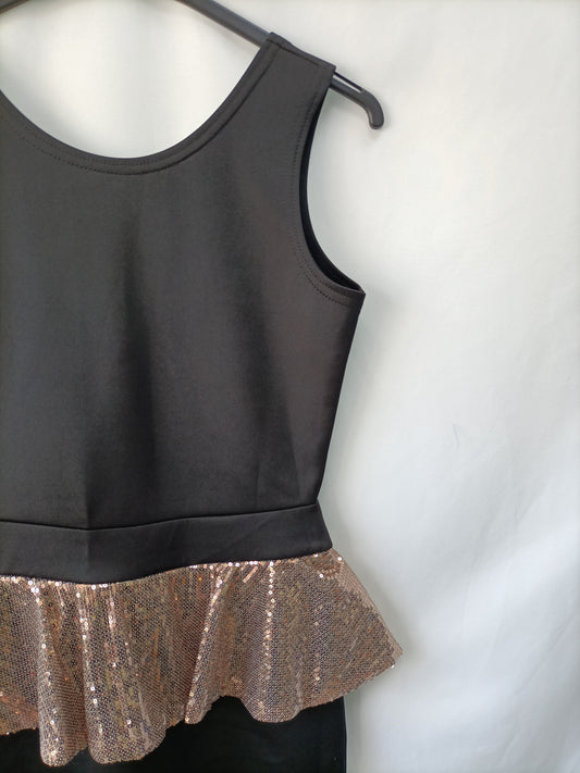 OTRAS. Vestido negro flores textura y lentejuelas T.u