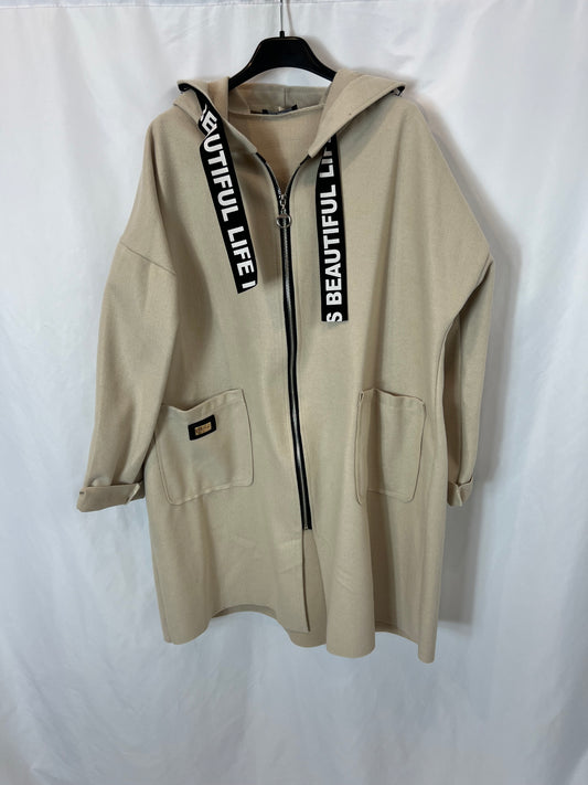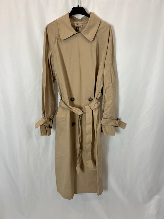 OTRAS. Abrigo fino paño beige detalles. T M/L