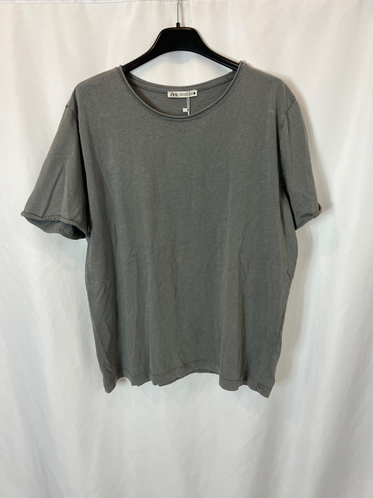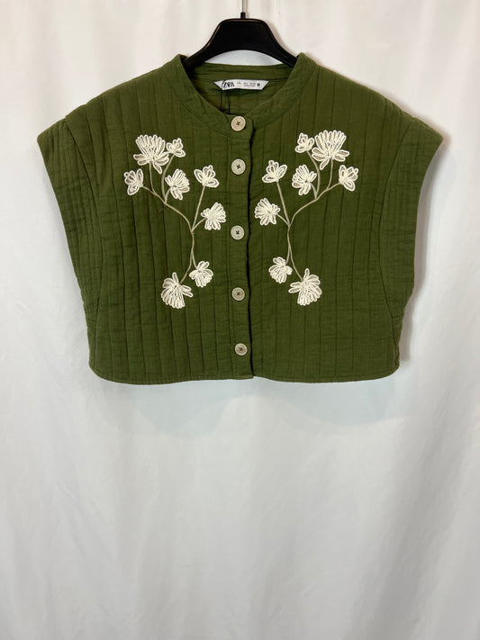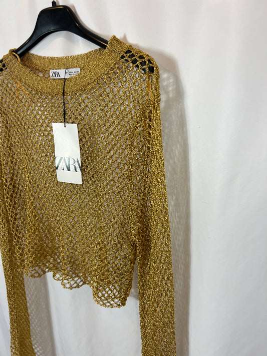 ZARA. Pantalón fluido beige estampado geométrico . T S