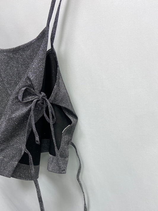 OTRAS.Croptop plateado aberturas laterales T.S
