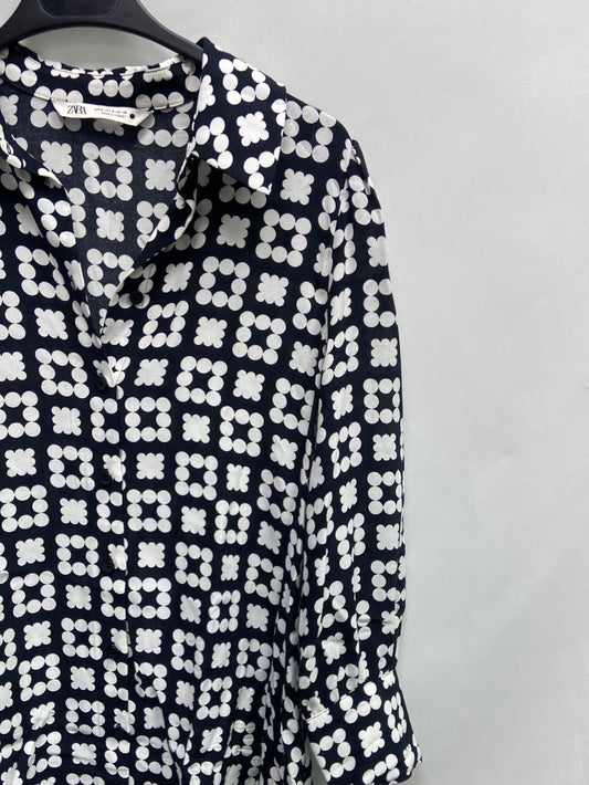 MORGAN .Blusa transparente negra estampada. T 44 (M/L)
