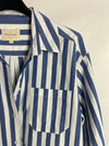 camisa de rayas oversized. Largo 70cm, no elástico. Tara: mini mancha en el bolsillo imperceptible (foto)