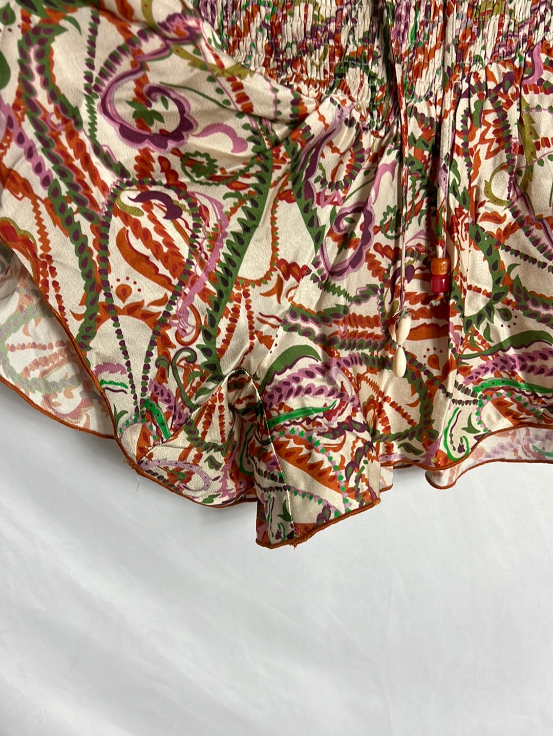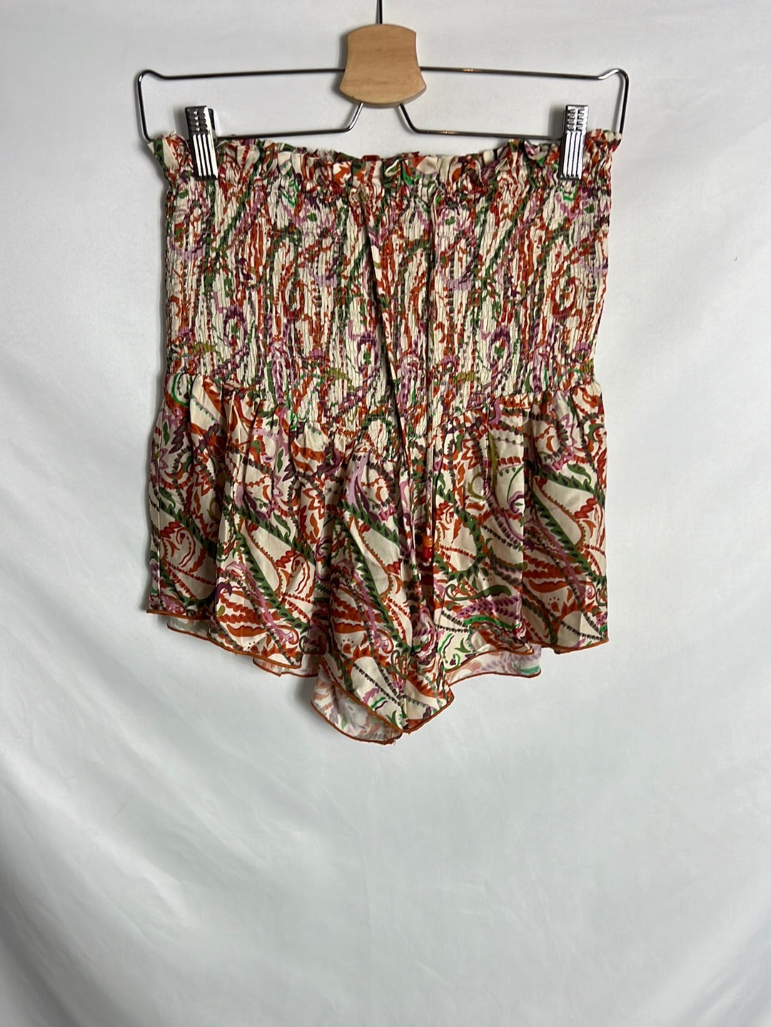 Short de tejido satinado estampado. Largo 39, cintura elástica