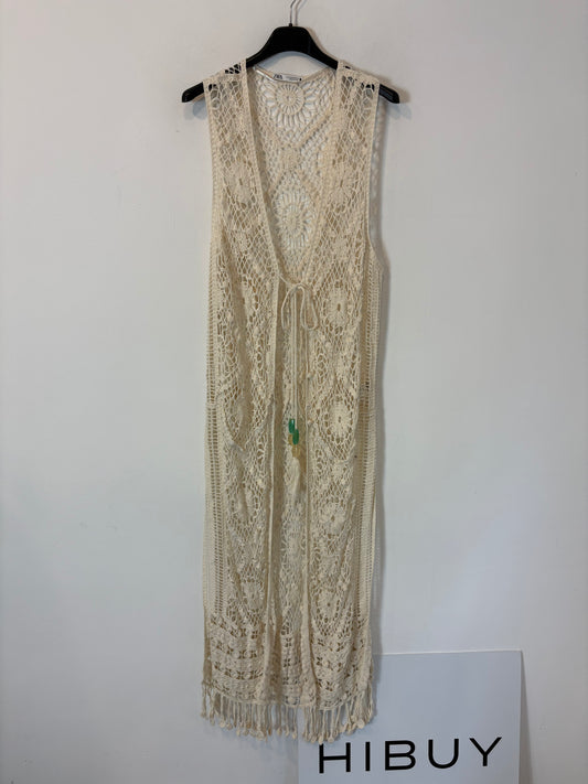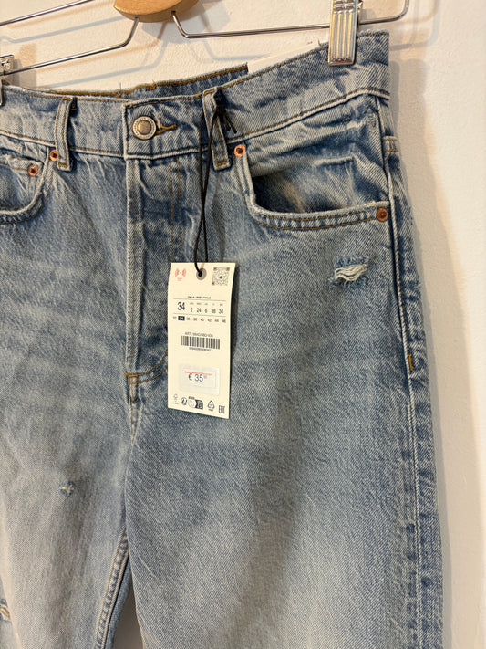 ZARA. Vestido azul claro entallado mangas tul. T XS